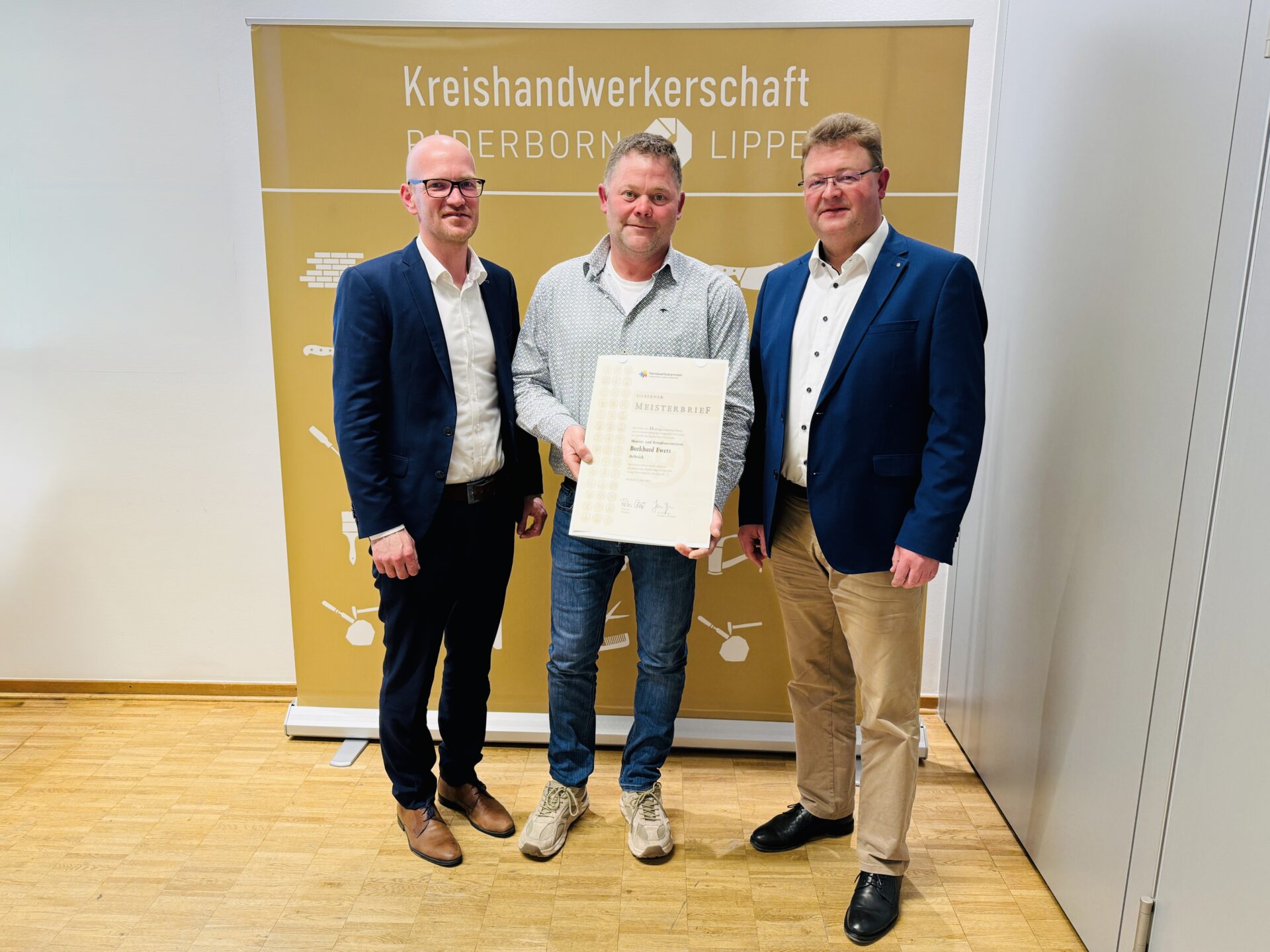 Als weitere Ehrung erhielt Maurer- und Betonbauermeister Burkhard Ewers an dem Abend den Silbernen Meisterbrief für sein 25-jähriges Meisterjubiläum.